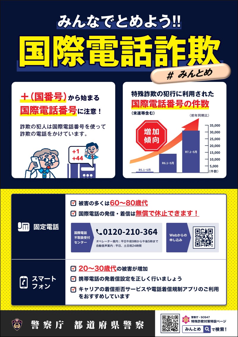 国際電話詐欺に注意し、そういった電話がかからないよう手段を講じることも有効です!